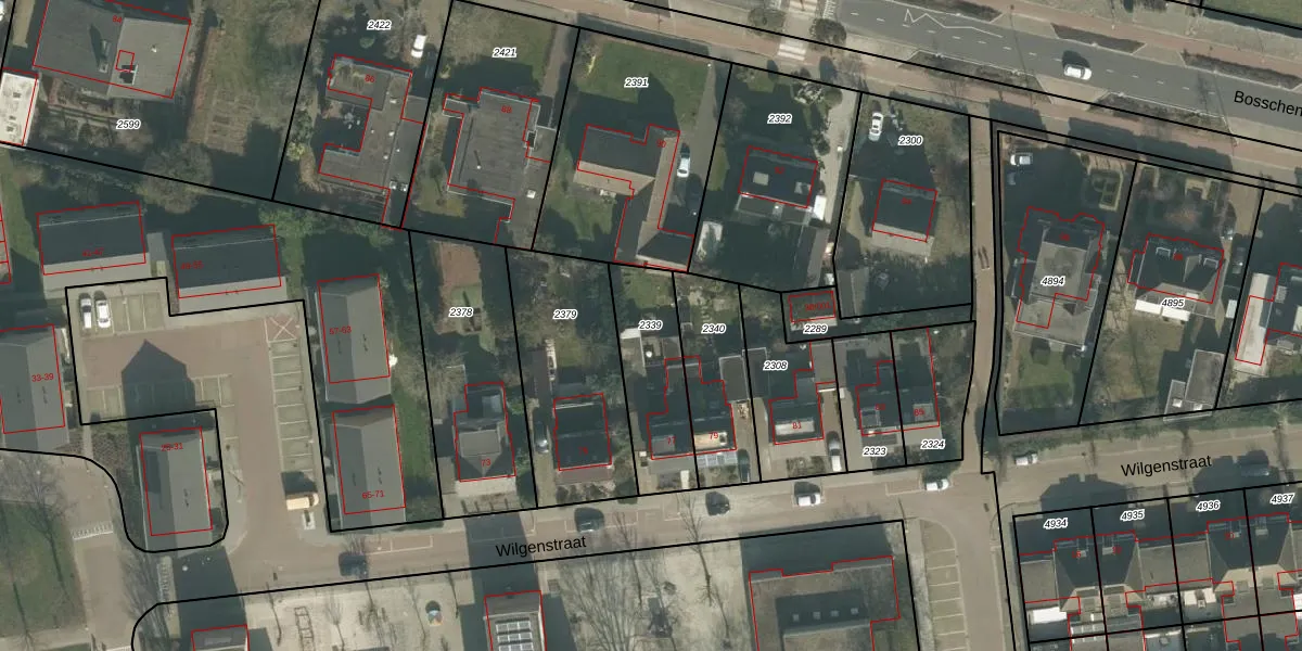 Gebruik de zoekbalk of klik op een perceel om informatie over het perceel te bekijken.