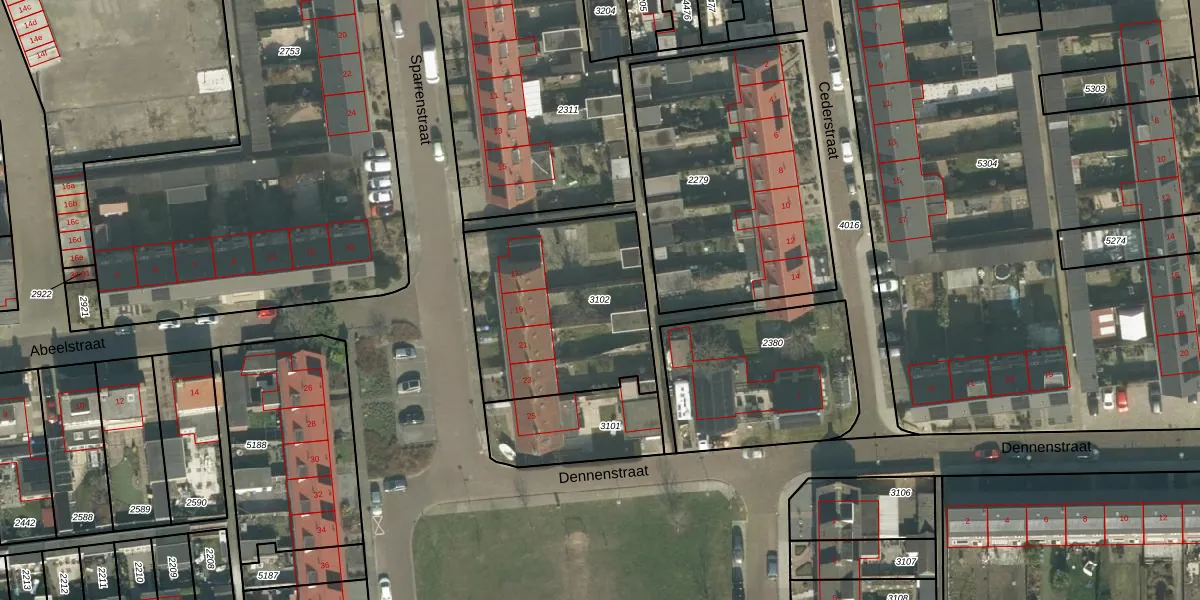 Gebruik de zoekbalk of klik op een perceel om informatie over het perceel te bekijken.