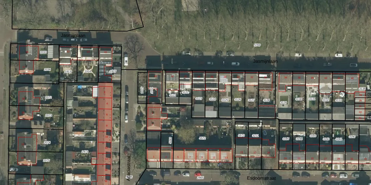 Gebruik de zoekbalk of klik op een perceel om informatie over het perceel te bekijken.