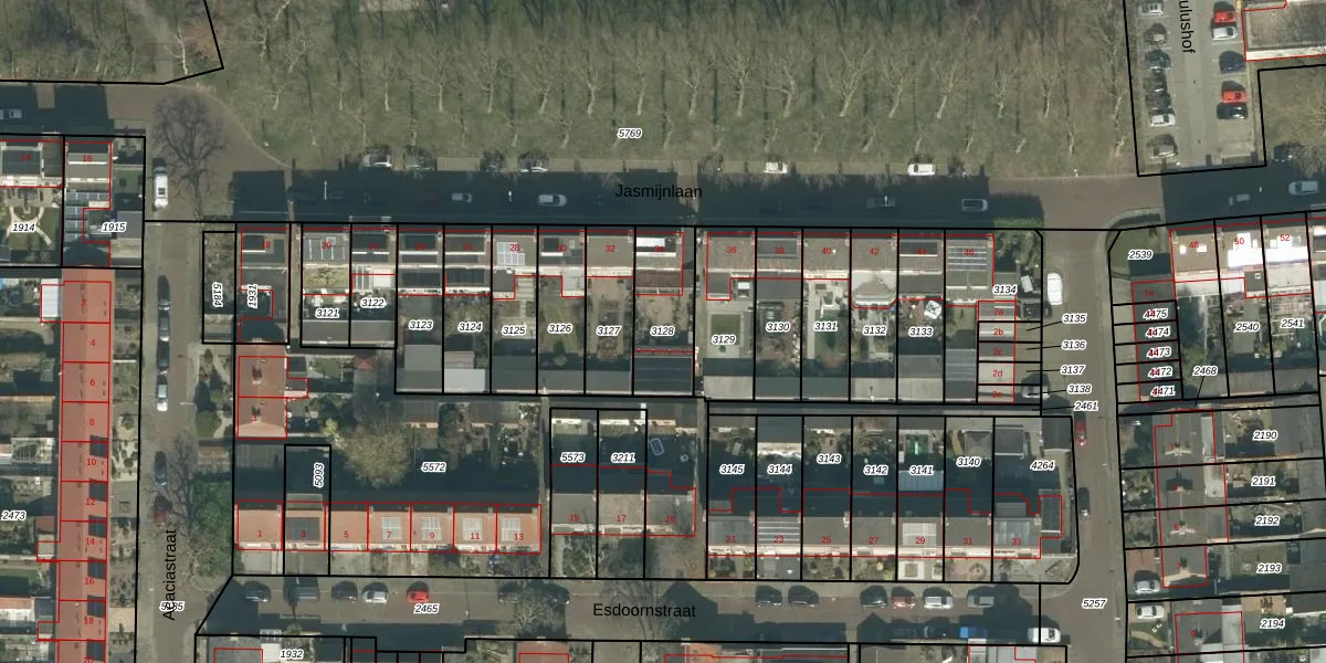 Gebruik de zoekbalk of klik op een perceel om informatie over het perceel te bekijken.