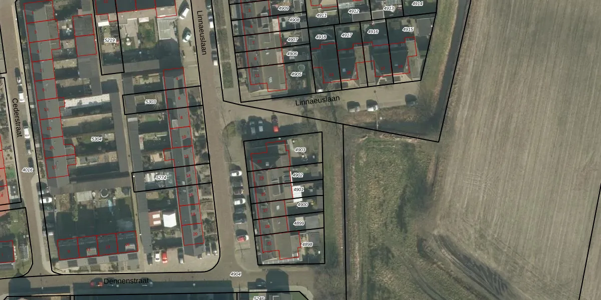 Gebruik de zoekbalk of klik op een perceel om informatie over het perceel te bekijken.