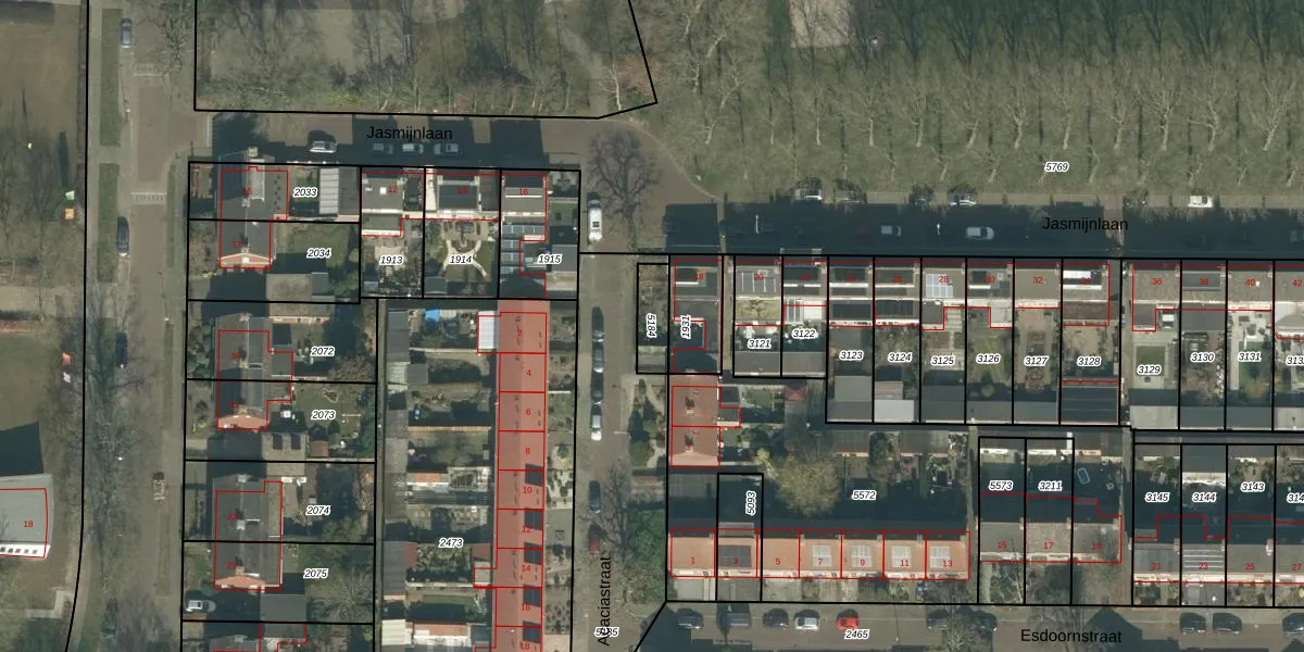 Gebruik de zoekbalk of klik op een perceel om informatie over het perceel te bekijken.