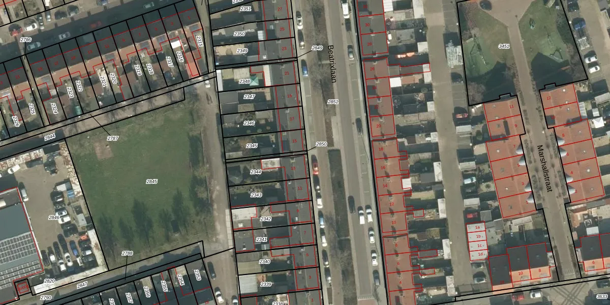 Gebruik de zoekbalk of klik op een perceel om informatie over het perceel te bekijken.