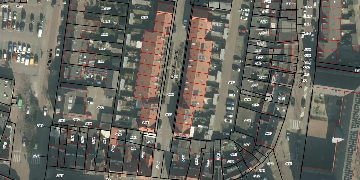 Gebruik de zoekbalk of klik op een perceel om informatie over het perceel te bekijken.