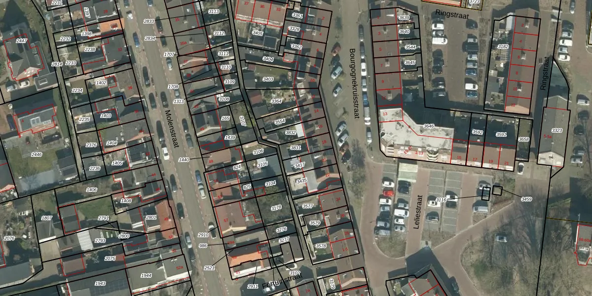 Gebruik de zoekbalk of klik op een perceel om informatie over het perceel te bekijken.