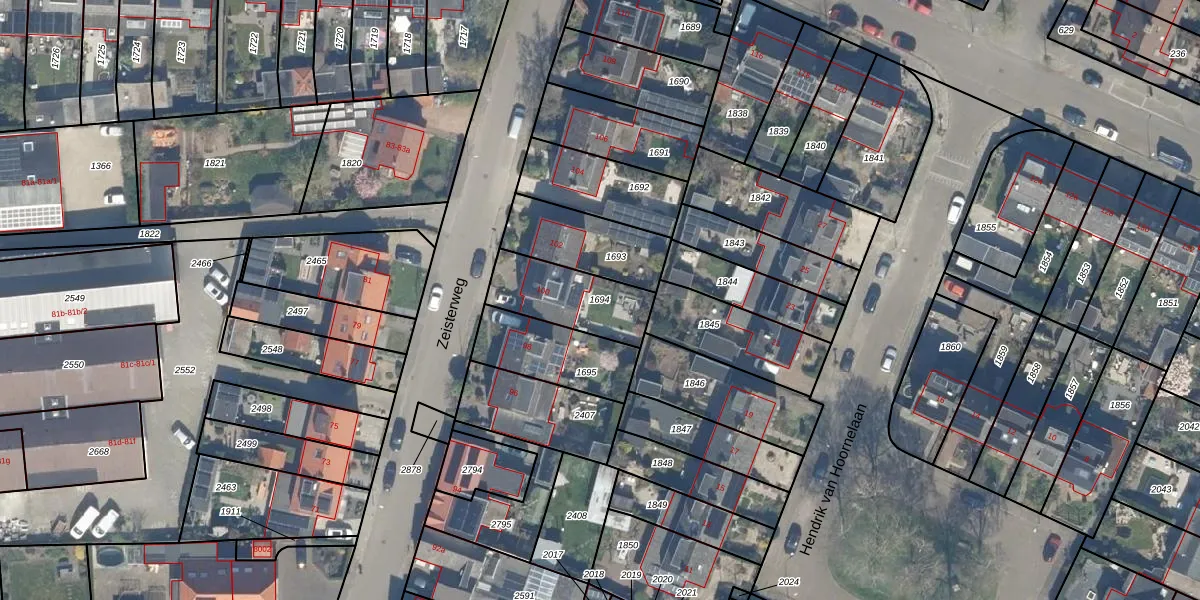 Gebruik de zoekbalk of klik op een perceel om informatie over het perceel te bekijken.