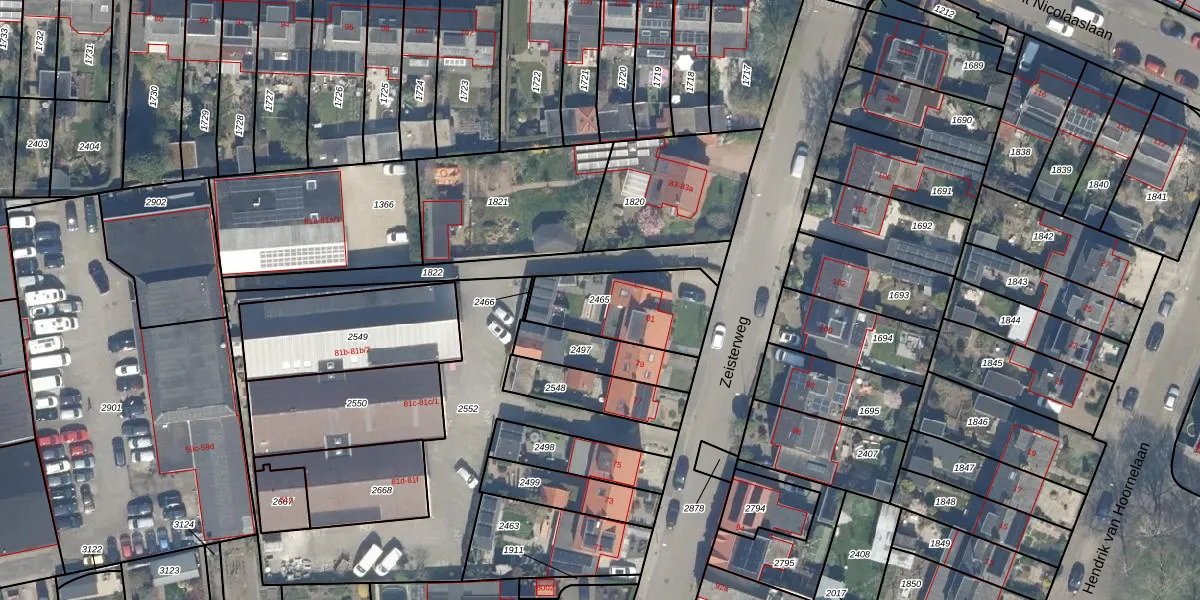 Gebruik de zoekbalk of klik op een perceel om informatie over het perceel te bekijken.