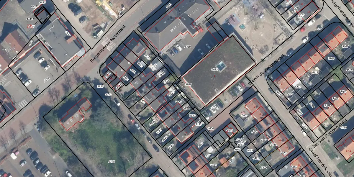 Gebruik de zoekbalk of klik op een perceel om informatie over het perceel te bekijken.