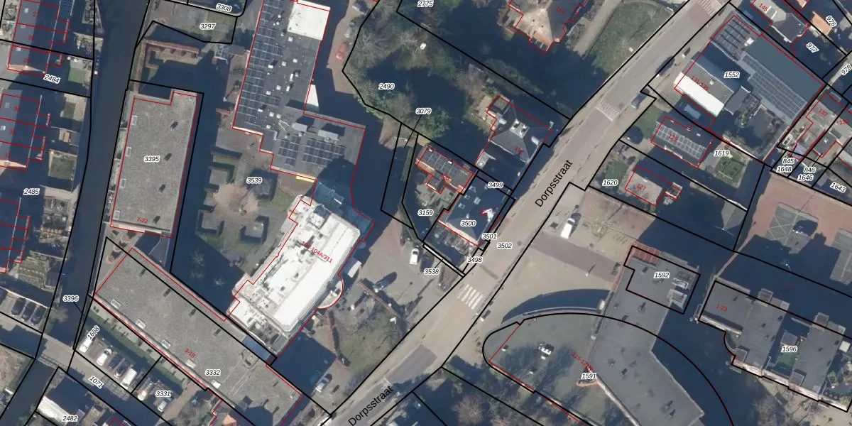 Gebruik de zoekbalk of klik op een perceel om informatie over het perceel te bekijken.