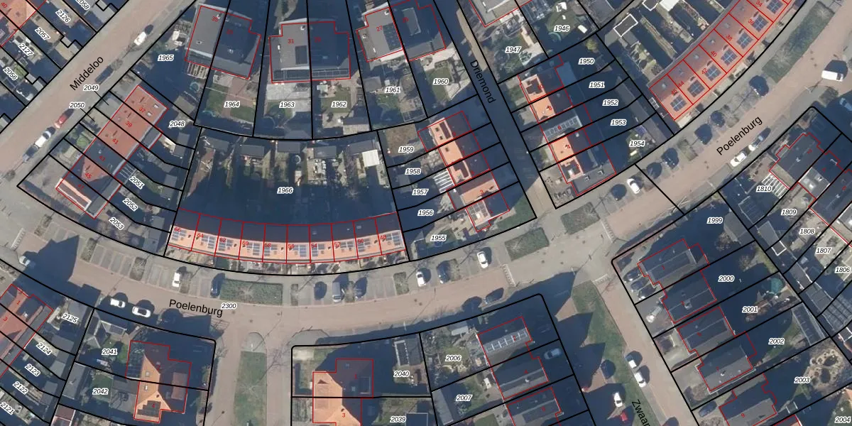 Gebruik de zoekbalk of klik op een perceel om informatie over het perceel te bekijken.