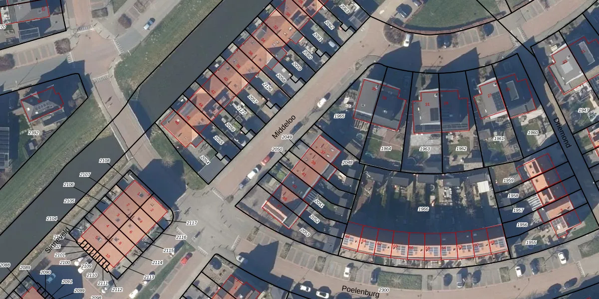 Gebruik de zoekbalk of klik op een perceel om informatie over het perceel te bekijken.