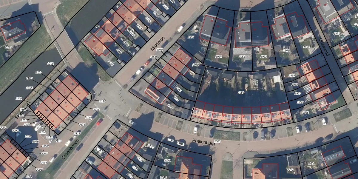 Gebruik de zoekbalk of klik op een perceel om informatie over het perceel te bekijken.