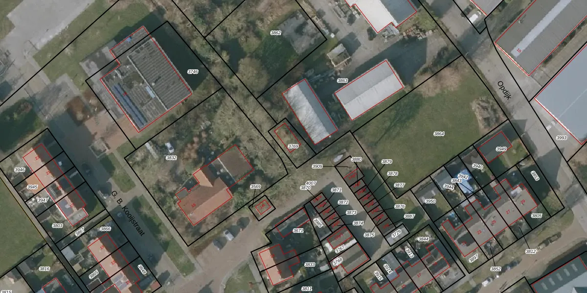 Gebruik de zoekbalk of klik op een perceel om informatie over het perceel te bekijken.