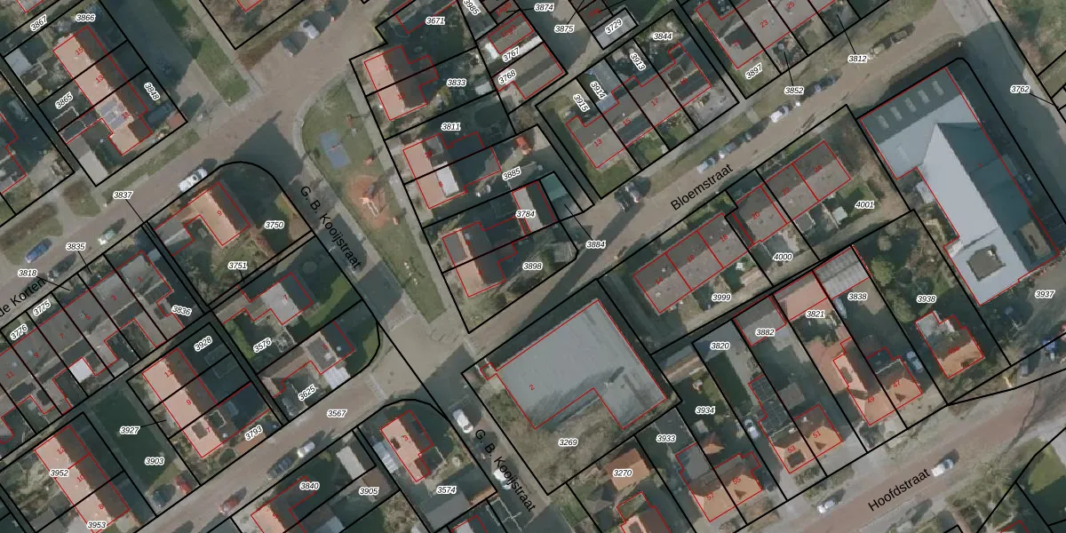Gebruik de zoekbalk of klik op een perceel om informatie over het perceel te bekijken.