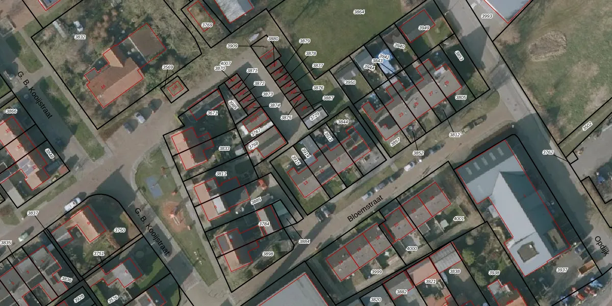 Gebruik de zoekbalk of klik op een perceel om informatie over het perceel te bekijken.