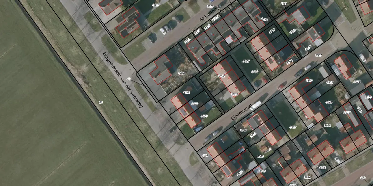 Gebruik de zoekbalk of klik op een perceel om informatie over het perceel te bekijken.