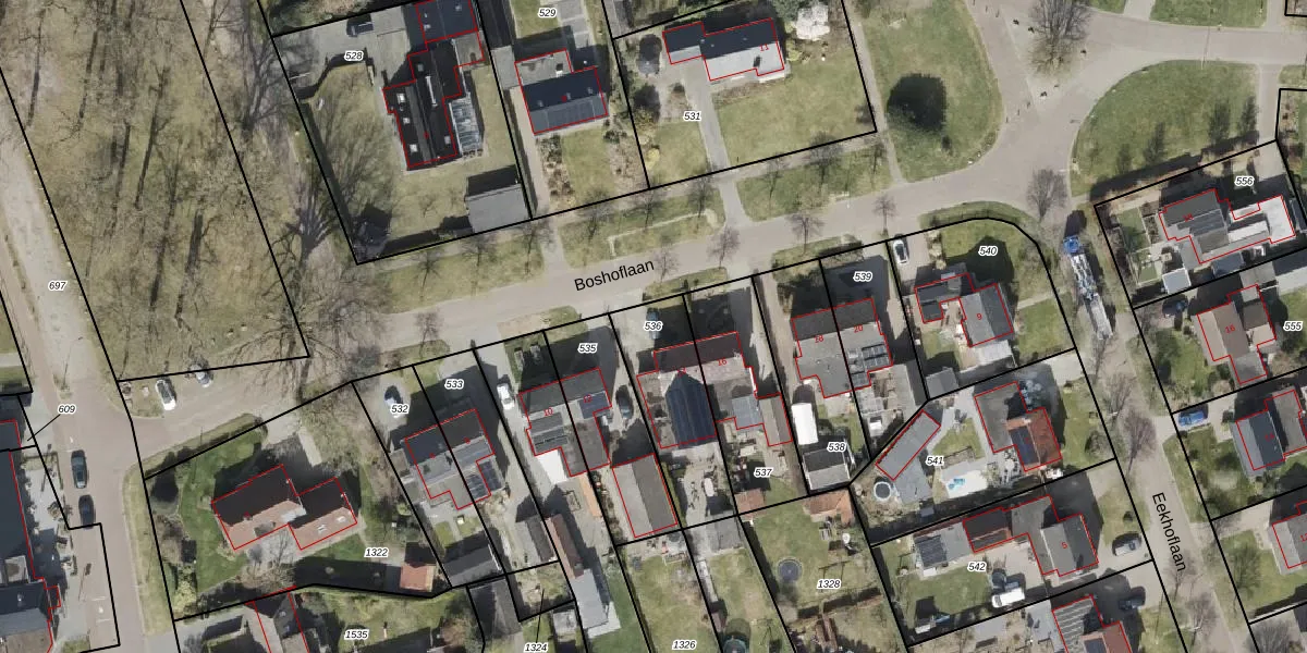Gebruik de zoekbalk of klik op een perceel om informatie over het perceel te bekijken.