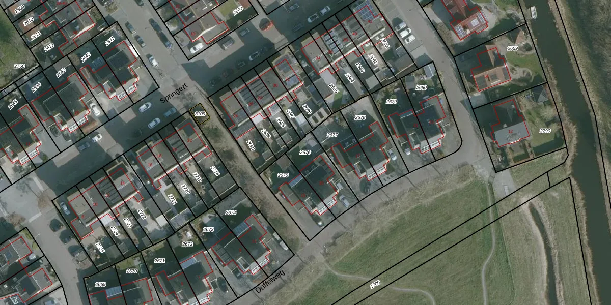 Gebruik de zoekbalk of klik op een perceel om informatie over het perceel te bekijken.