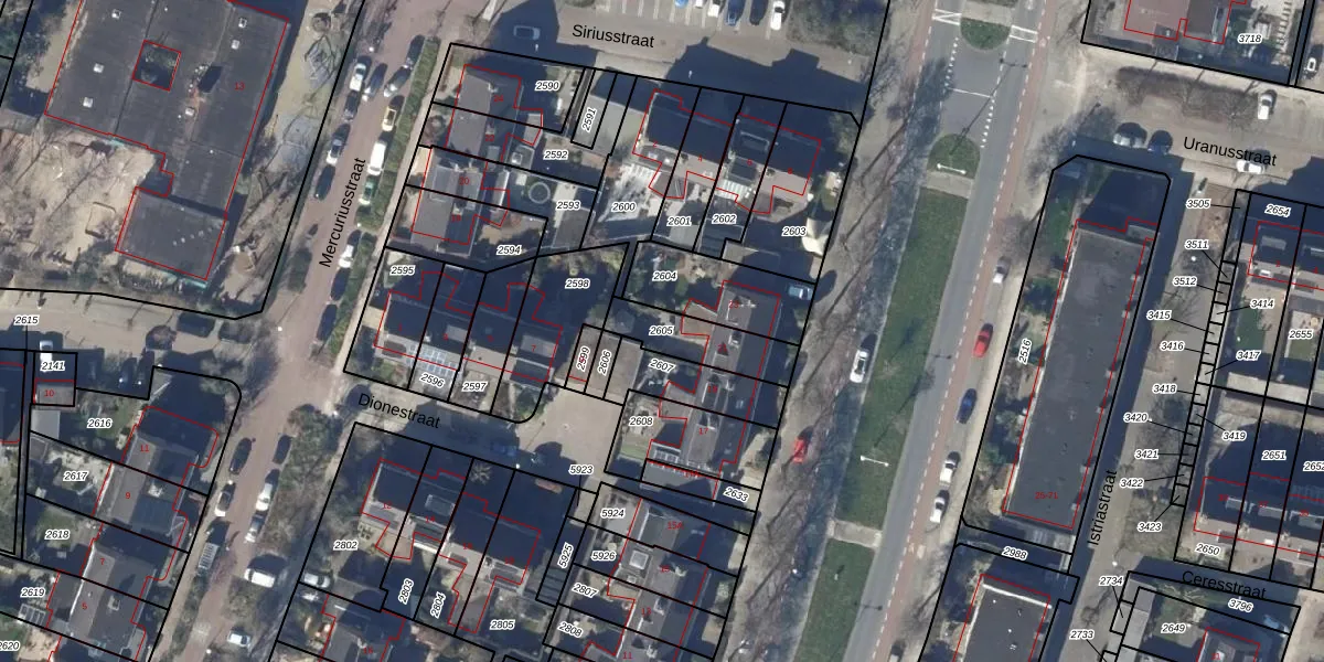 Gebruik de zoekbalk of klik op een perceel om informatie over het perceel te bekijken.