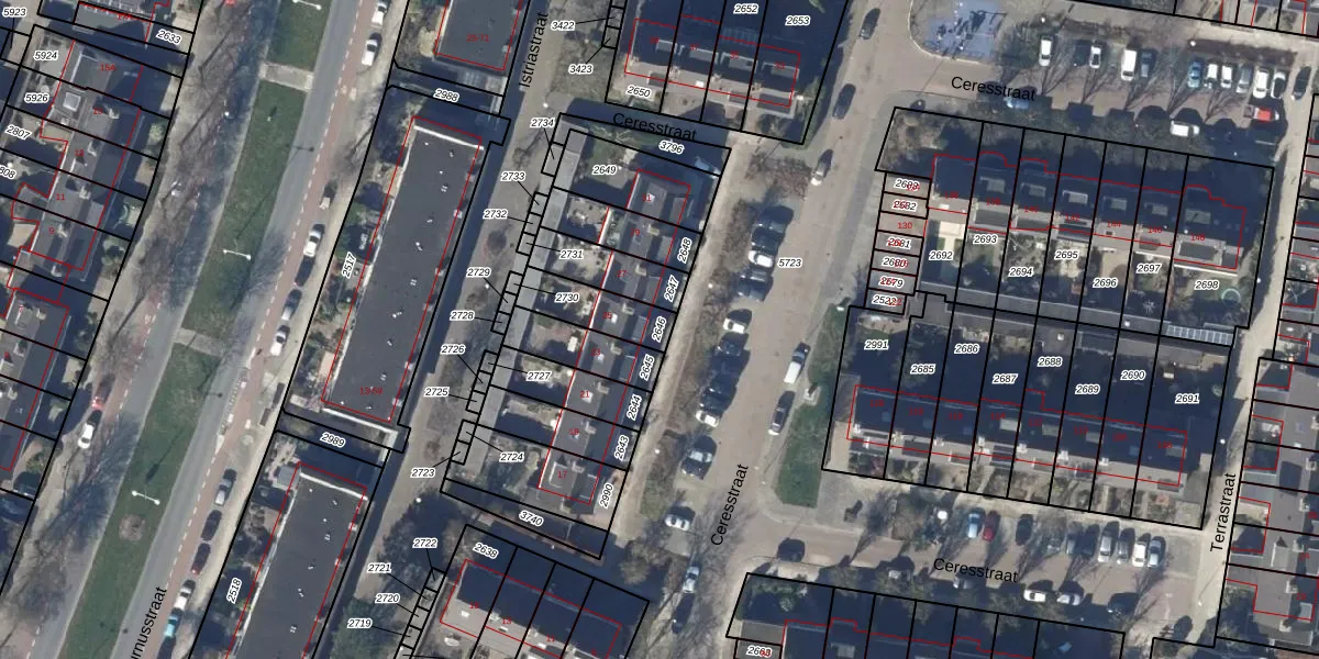 Gebruik de zoekbalk of klik op een perceel om informatie over het perceel te bekijken.