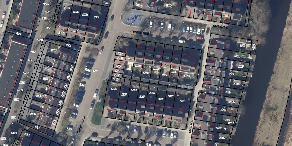 Gebruik de zoekbalk of klik op een perceel om informatie over het perceel te bekijken.