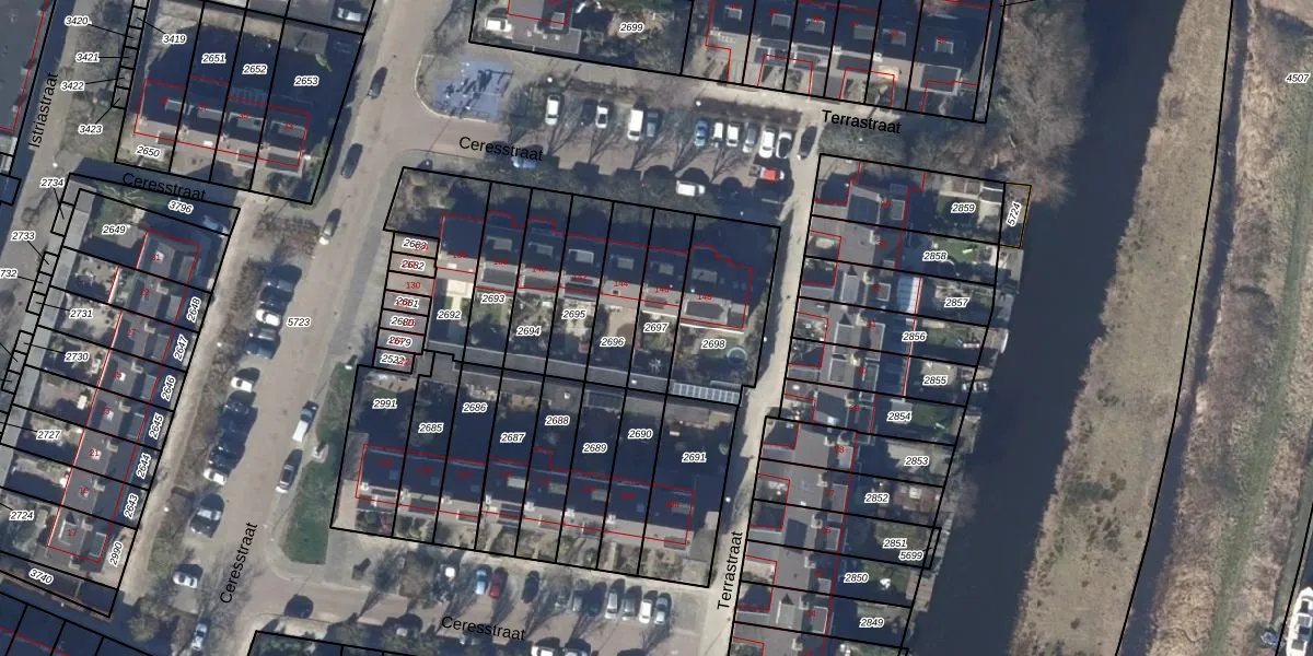Gebruik de zoekbalk of klik op een perceel om informatie over het perceel te bekijken.