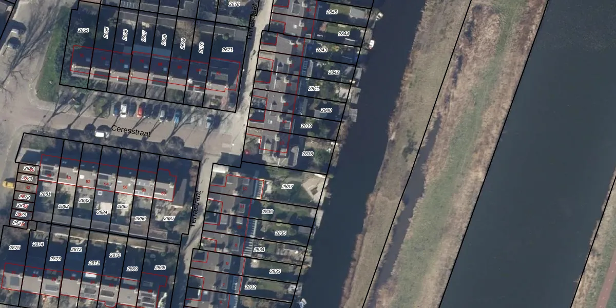 Gebruik de zoekbalk of klik op een perceel om informatie over het perceel te bekijken.