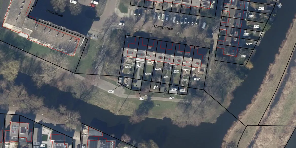 Gebruik de zoekbalk of klik op een perceel om informatie over het perceel te bekijken.