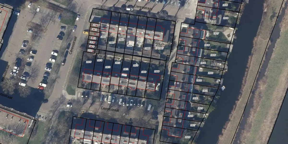 Gebruik de zoekbalk of klik op een perceel om informatie over het perceel te bekijken.