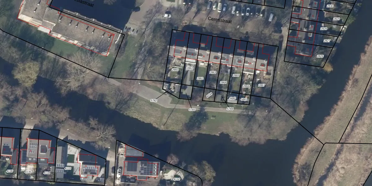 Gebruik de zoekbalk of klik op een perceel om informatie over het perceel te bekijken.