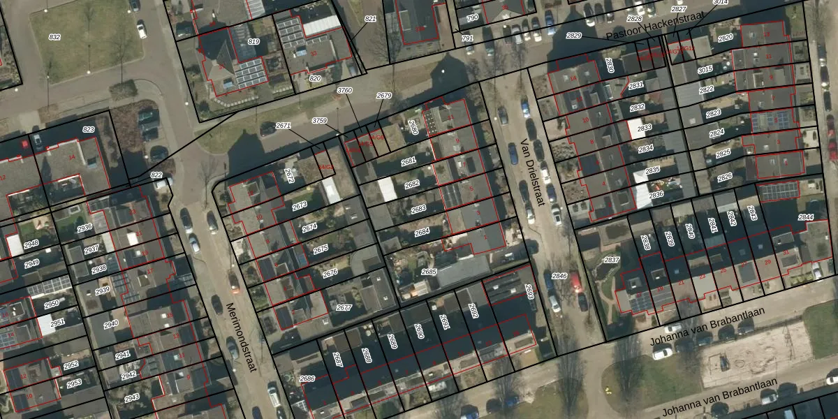 Gebruik de zoekbalk of klik op een perceel om informatie over het perceel te bekijken.
