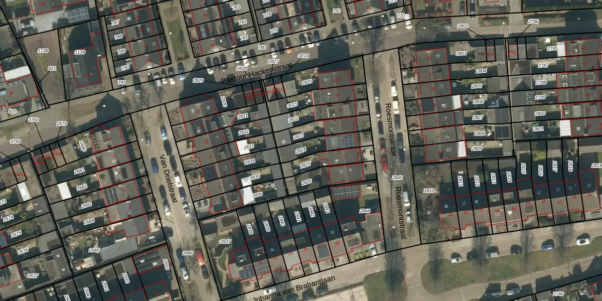 Gebruik de zoekbalk of klik op een perceel om informatie over het perceel te bekijken.