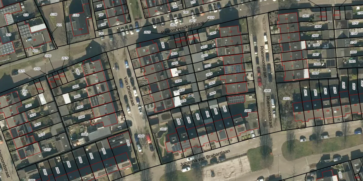 Gebruik de zoekbalk of klik op een perceel om informatie over het perceel te bekijken.