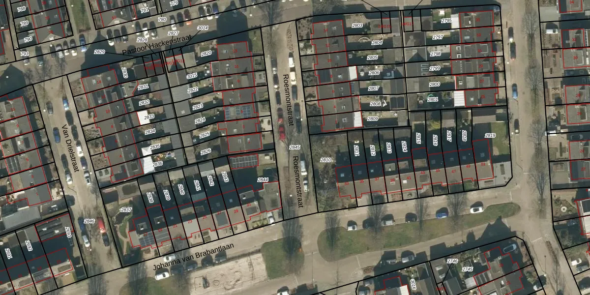 Gebruik de zoekbalk of klik op een perceel om informatie over het perceel te bekijken.
