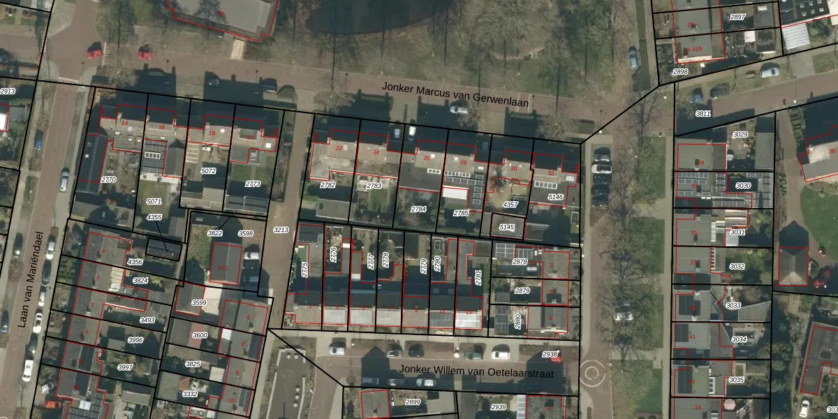 Gebruik de zoekbalk of klik op een perceel om informatie over het perceel te bekijken.