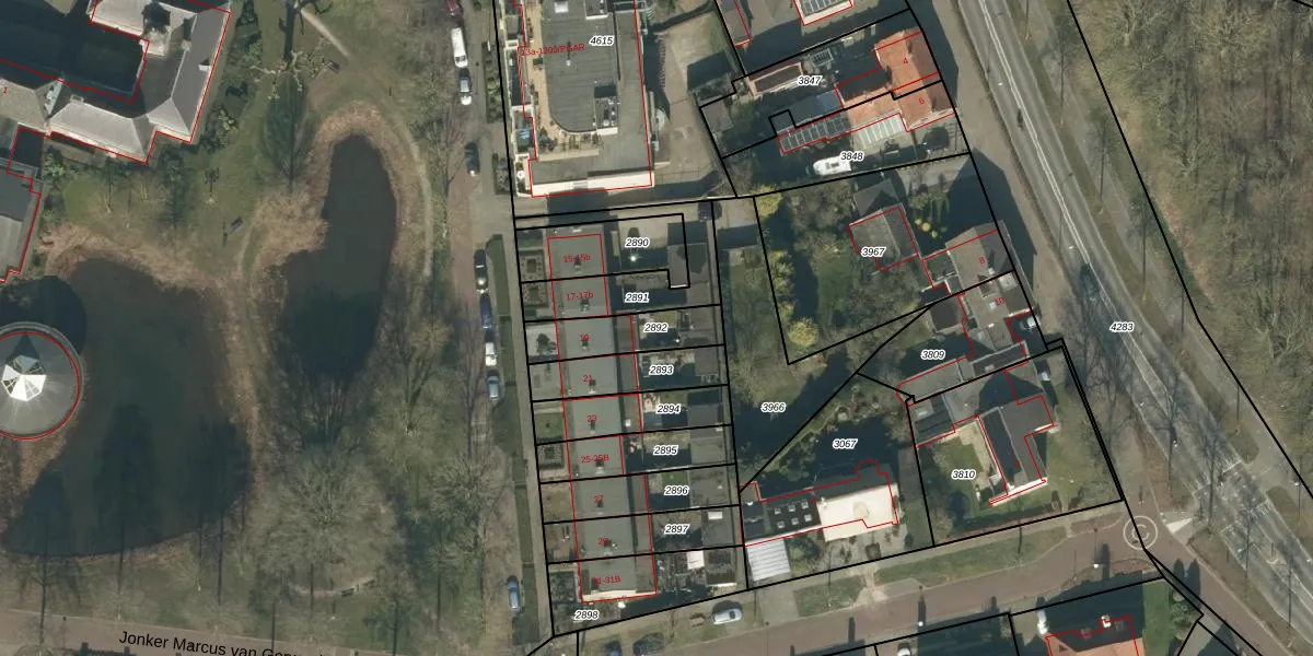 Gebruik de zoekbalk of klik op een perceel om informatie over het perceel te bekijken.