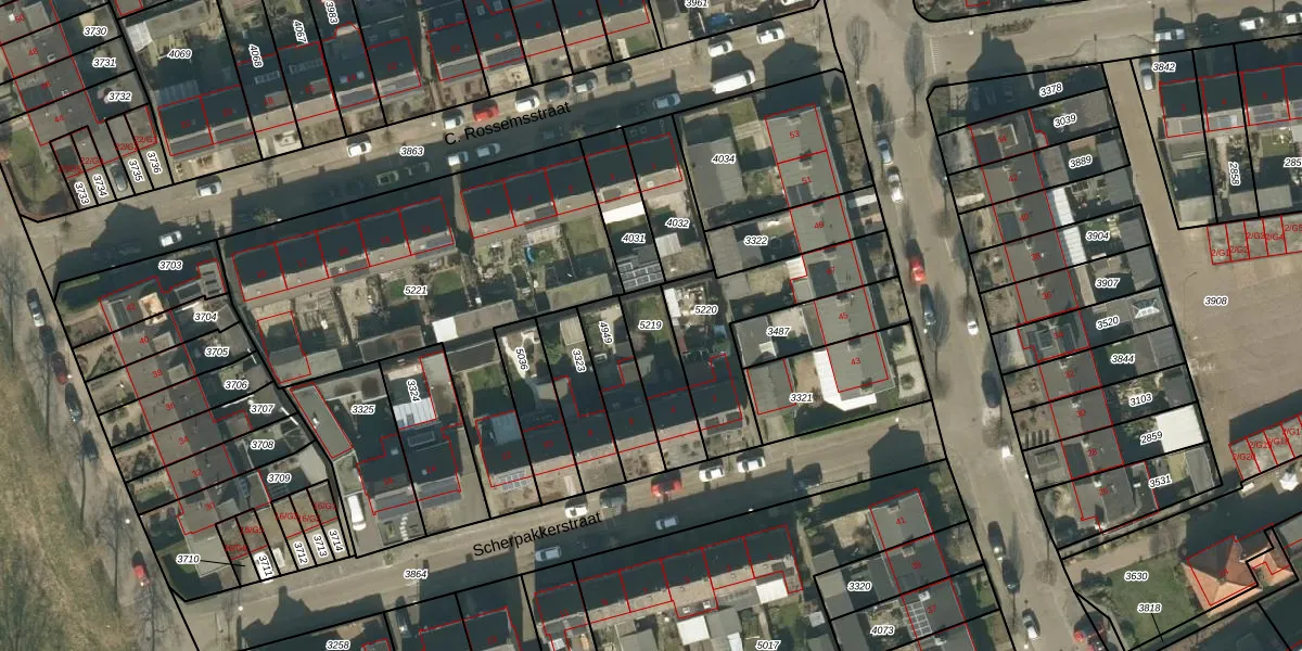 Gebruik de zoekbalk of klik op een perceel om informatie over het perceel te bekijken.