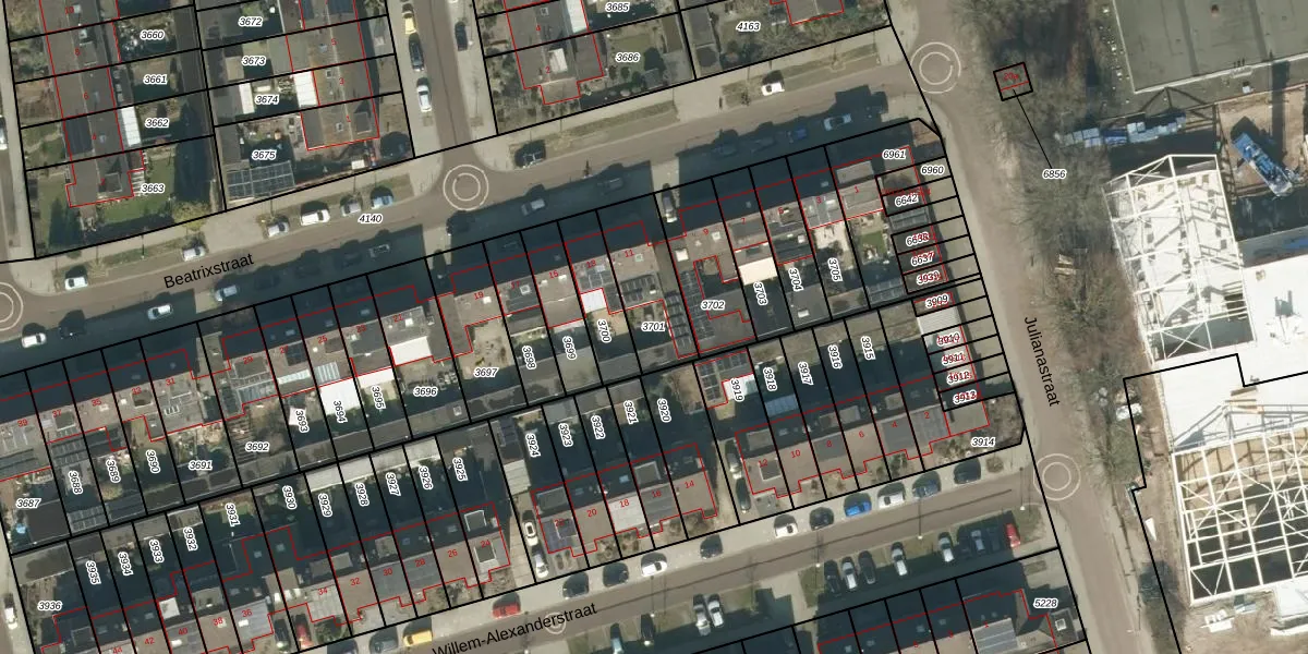 Gebruik de zoekbalk of klik op een perceel om informatie over het perceel te bekijken.