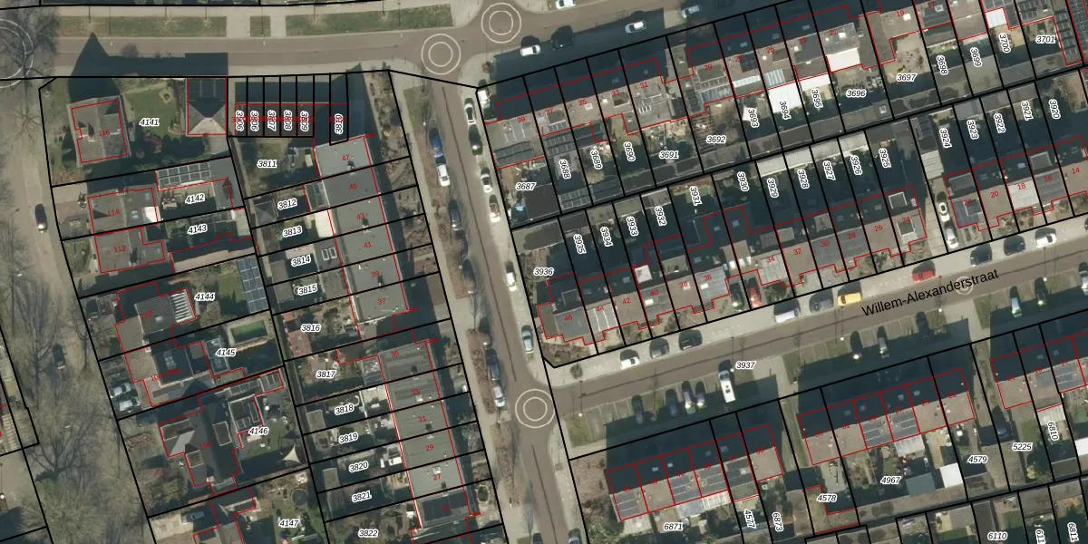 Gebruik de zoekbalk of klik op een perceel om informatie over het perceel te bekijken.