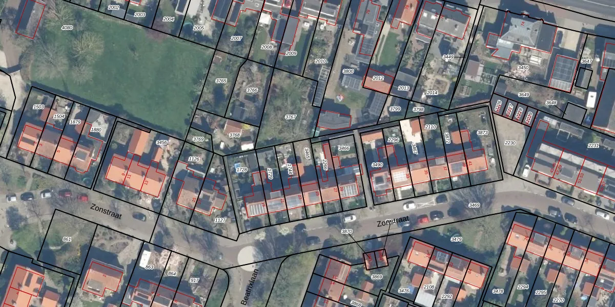 Gebruik de zoekbalk of klik op een perceel om informatie over het perceel te bekijken.