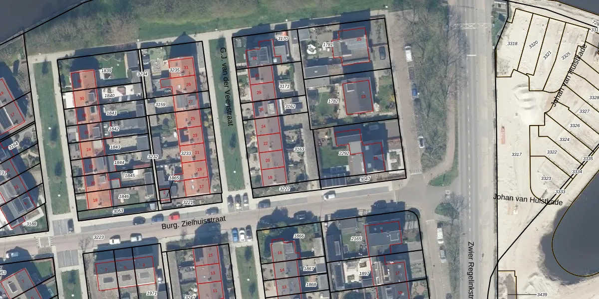 Gebruik de zoekbalk of klik op een perceel om informatie over het perceel te bekijken.