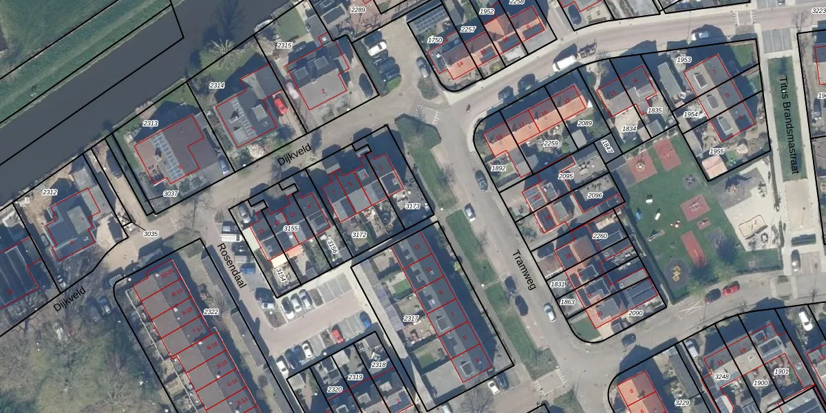 Gebruik de zoekbalk of klik op een perceel om informatie over het perceel te bekijken.