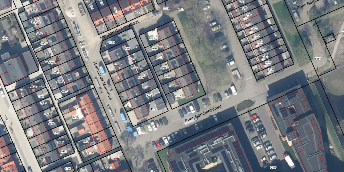 Gebruik de zoekbalk of klik op een perceel om informatie over het perceel te bekijken.