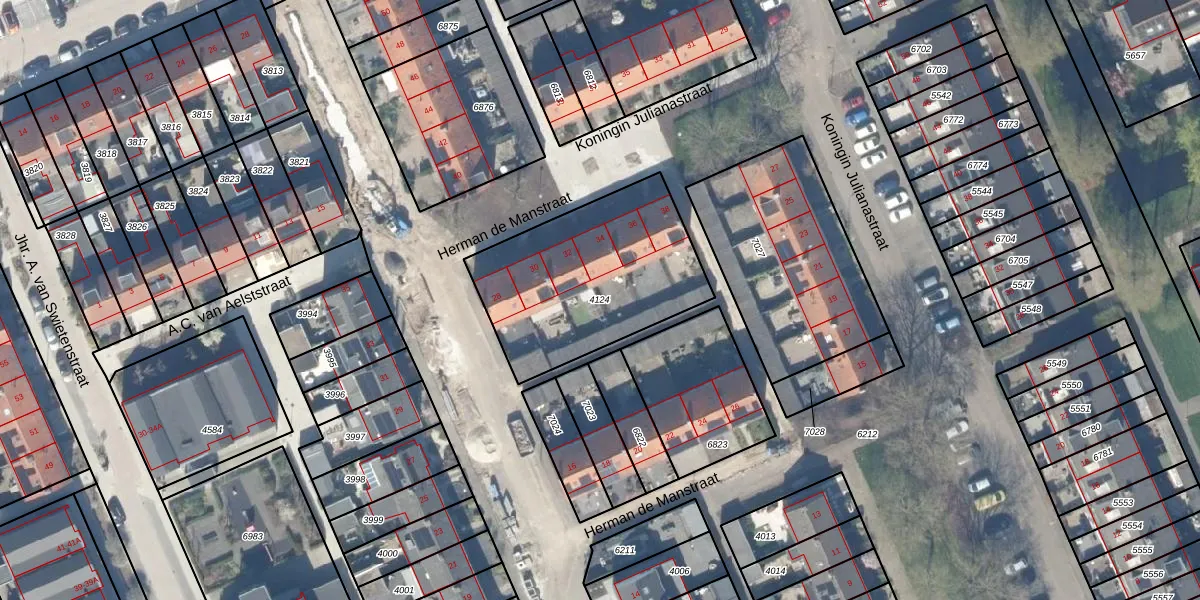 Gebruik de zoekbalk of klik op een perceel om informatie over het perceel te bekijken.