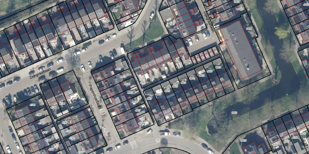 Gebruik de zoekbalk of klik op een perceel om informatie over het perceel te bekijken.