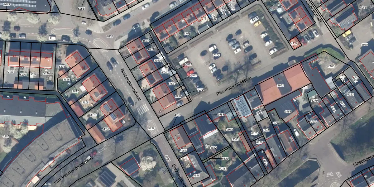 Gebruik de zoekbalk of klik op een perceel om informatie over het perceel te bekijken.