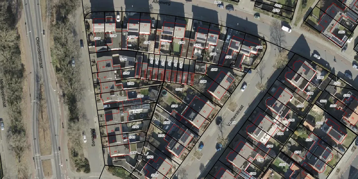 Gebruik de zoekbalk of klik op een perceel om informatie over het perceel te bekijken.