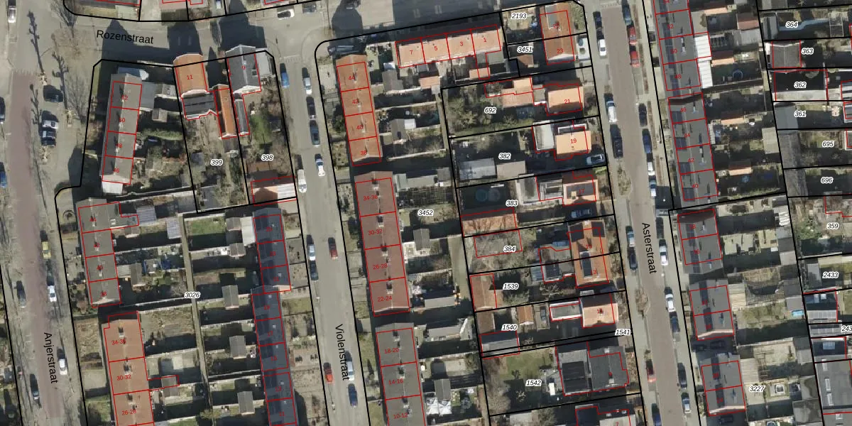 Gebruik de zoekbalk of klik op een perceel om informatie over het perceel te bekijken.