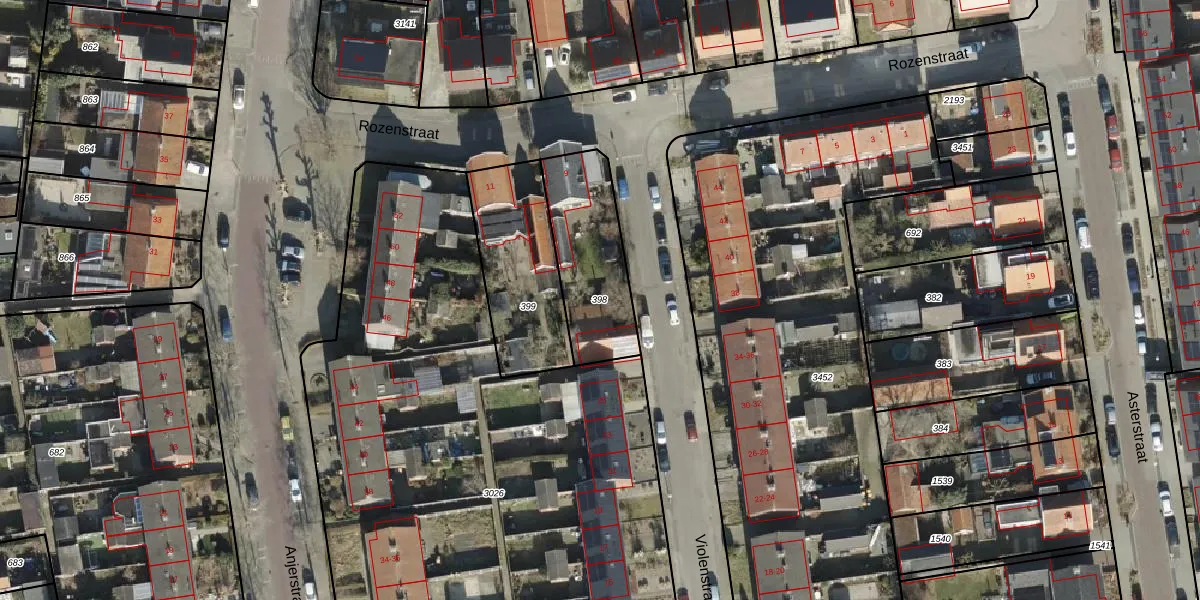Gebruik de zoekbalk of klik op een perceel om informatie over het perceel te bekijken.