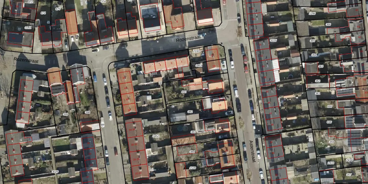 Gebruik de zoekbalk of klik op een perceel om informatie over het perceel te bekijken.